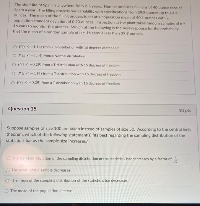 Solved The Shelf Life Of Spam Is Anywhere From 2 5 Years Chegg Com
